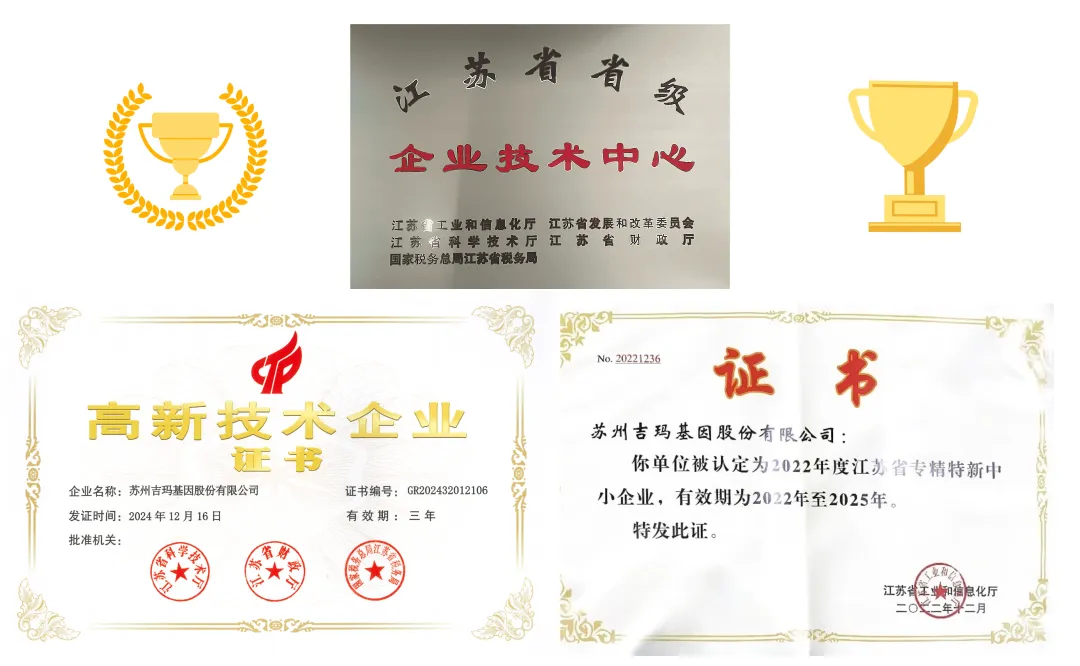 凭借在核酸技术研发、专利转化及产业贡献等方面的突出表现,吉玛基因2025年收获多项权威荣誉,成为行业认可的“实力派”代表: